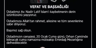 Üstadımız Av. Nadir Latif İslam’ı kaybetmenin derin üzüntüsünü yaşıyoruz. Üstadımıza Allah’tan rahmet, ailesine ve tüm sevenlerine sabır diliyoruz. Başımız sağ olsun. Üstadımızın ...