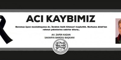BAROMUZ ÜYESİ MESLEKTAŞIMIZ AV. İBRAHİM SALİH ERKMEN'İ KAYBETTİK.